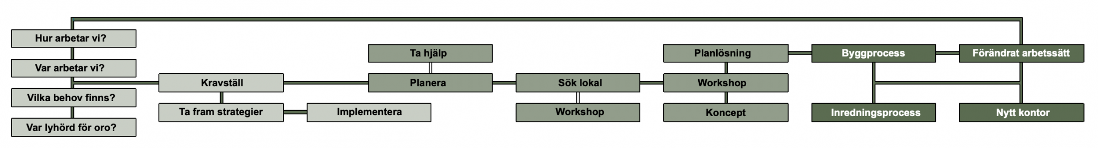 En kartläggning över behoven och användningen av skrivbordsplatser, mötesrum och gemensamma ytor är nödvändig och skapar snabbt en bild över de förändringar som kan behövas att genomföras i lokalen.